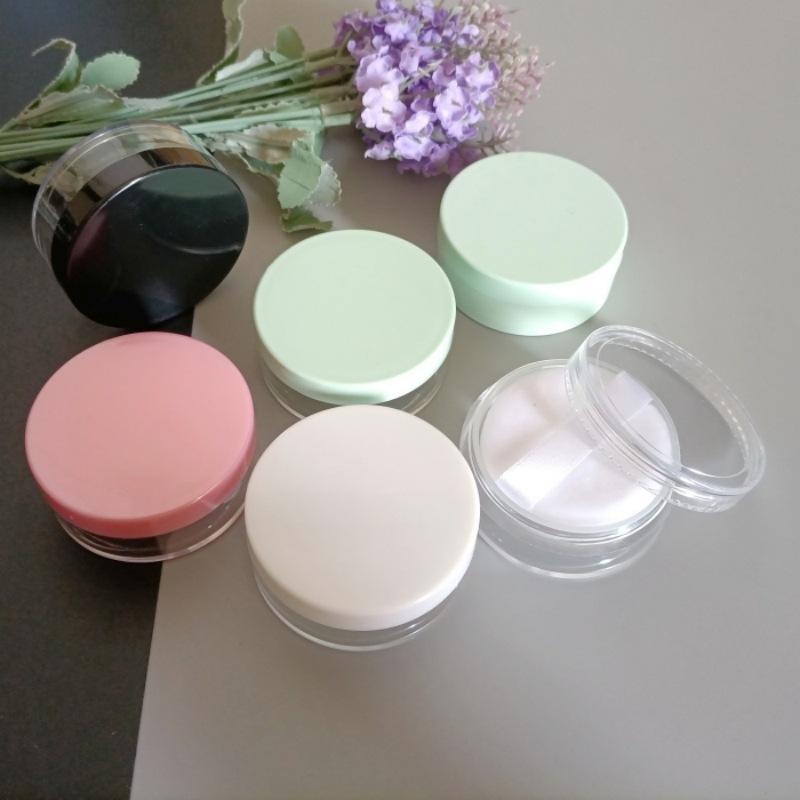 Caja de polvo suelto 10g mate translúcido con tapa y borla para todo tipo de piel