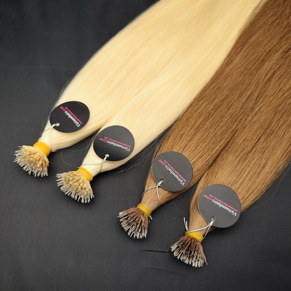 Extensiones de Cabello Remy con Ondas Sueltas/ Cabello Humano 100% Vietnamita/ Proveedores de Vietnam Extensiones de Cabello Liso Sedoso con Punta Nano de Alta Calidad