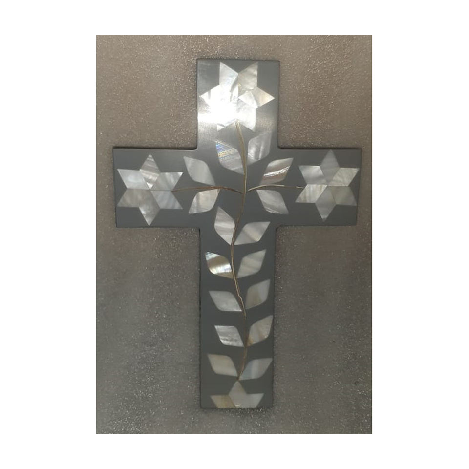 Señor Jesús en la Cruz, Artesanía en Madera con Incrustaciones de Nácar Hechas a Mano con Diseño de Hojas, para Cristianos, Artículo de Oración