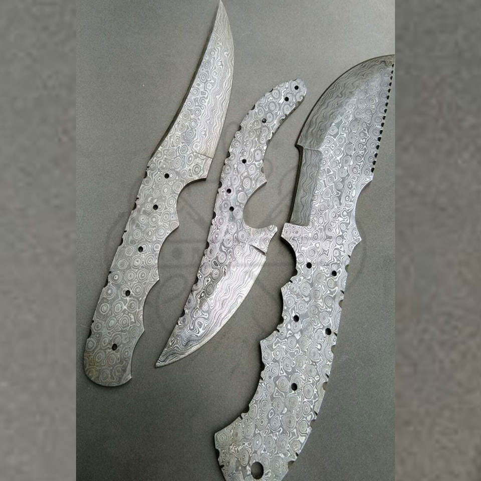 Lote de 3 piezas de hojas en bruto de Damasco forjadas a mano personalizadas