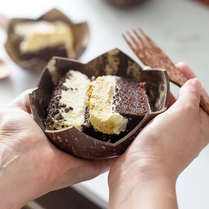 Tazón de mano Shell de coco en forma de loto:D7.1 x H2.4 pulgadas