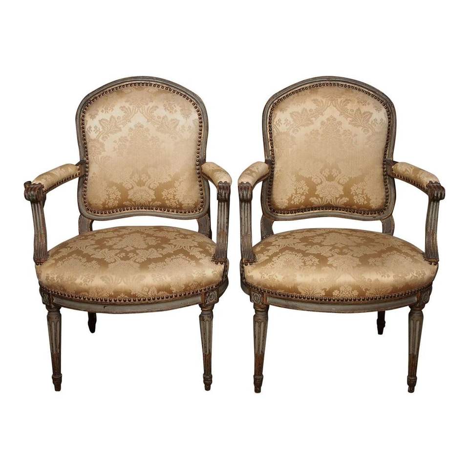 Description:Louis XV style dining chair with damask upholstery