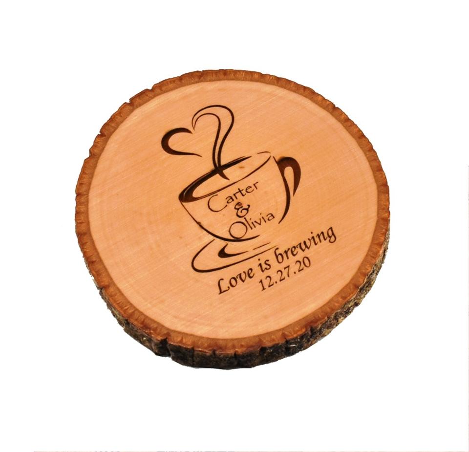 Juego de posavasos de madera personalizado con borde vivo grabado personalizado Love ENGRAVED con hueso hecho a mano e incrustaciones de latón hechas en la India