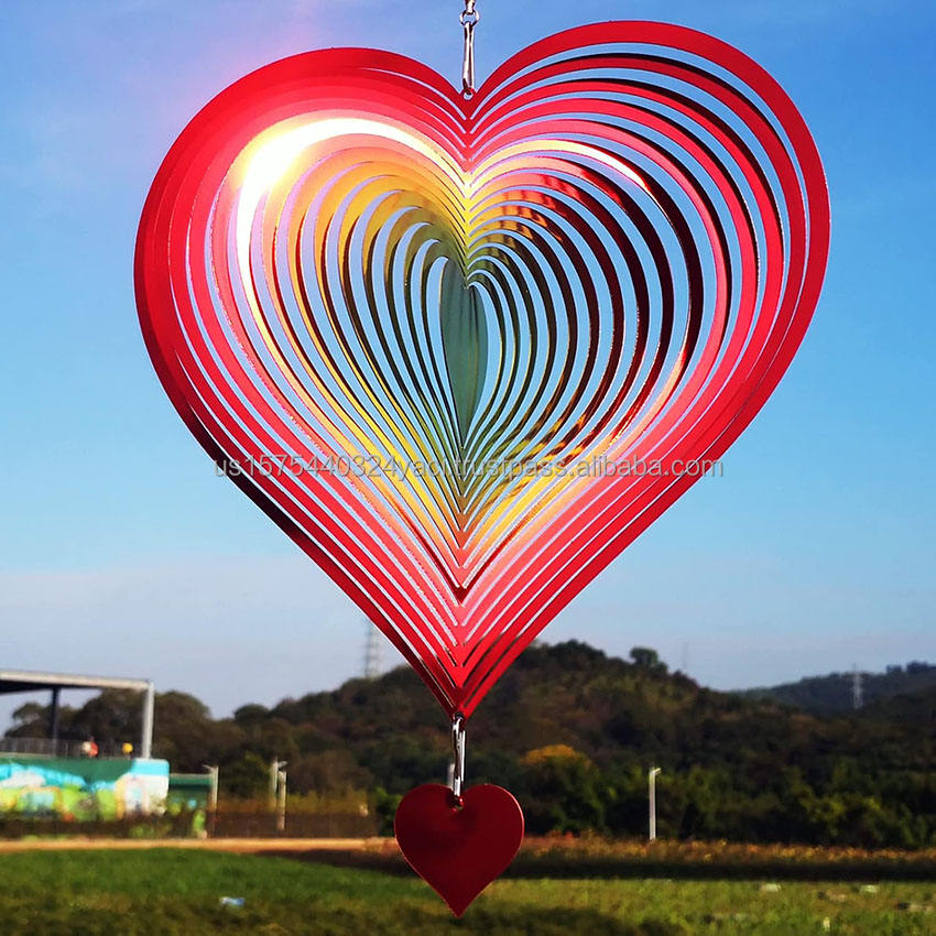 Molinillo de Viento 3D con Forma de Corazón, Degradado, Colgante, de Acero Inoxidable, Ideal para Regalo, Decoración de Jardín, Esculturas Activas del Viento
