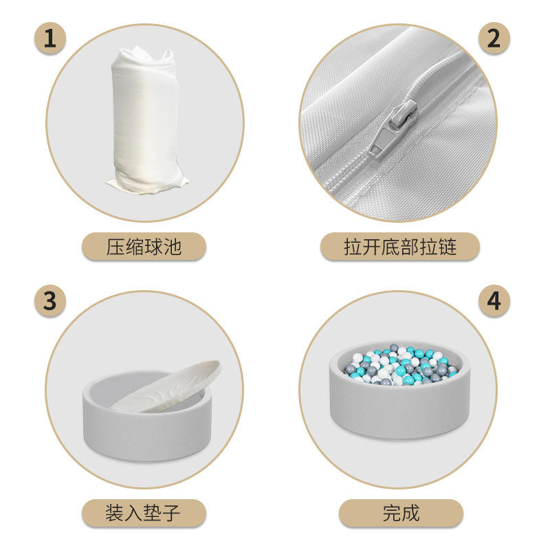 Piscina de Pelotas Love Tree de 90 cm de Diámetro y 30 cm de Altura, Juego Interior para Niños, Color Grisáceo, Rosa y Verde Menta, de Plástico y Esponja