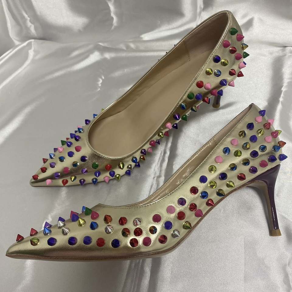 Zapatos de Tacón Bajo de 2 Pulgadas para Mujer, con Remaches, para Damas de Honor, Fiestas, Citas, Zapatos Sexys con Punta en Pico, Talla Grande, Personalización de Logotipo de Fábrica