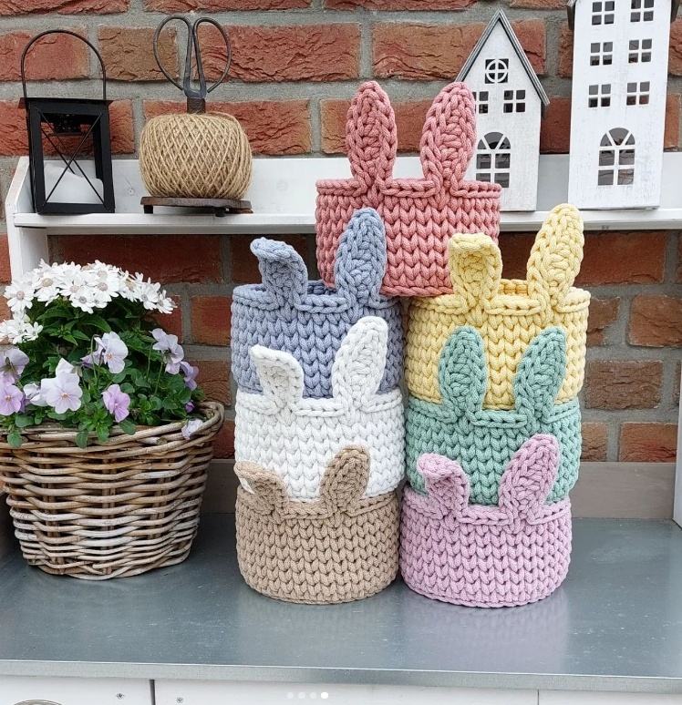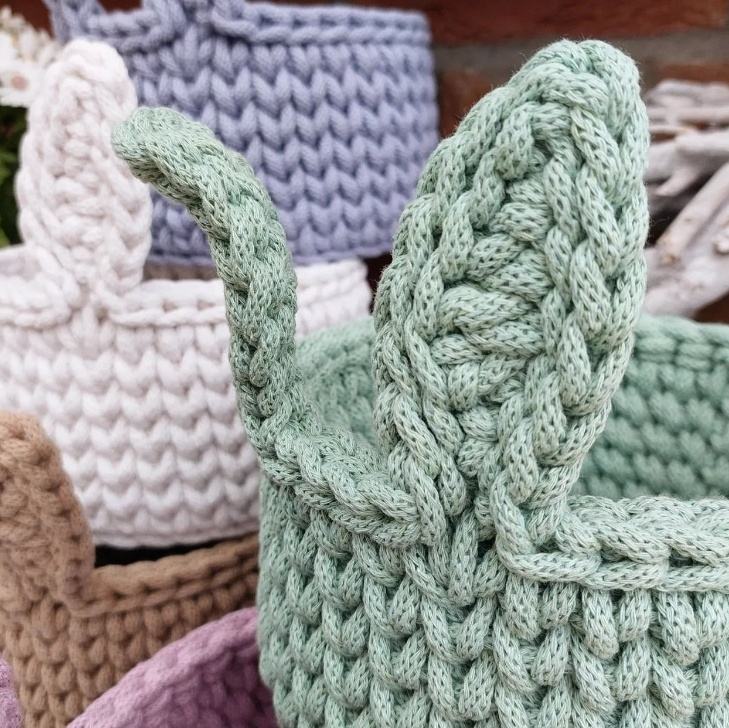 Cesta de ganchillo de MOQ bajo Estilo de conejo Aceptamos servicio personalizado Decoración de Pascua Linda y hecha a mano