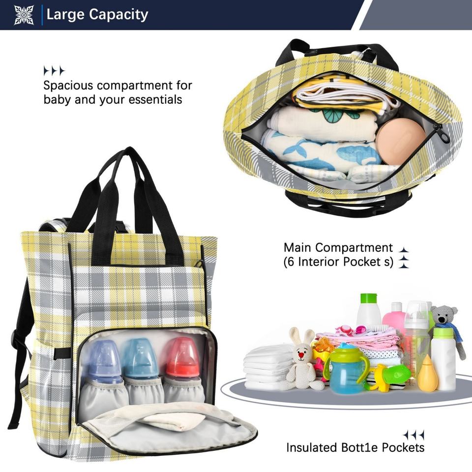 Bolsa de Pañales para Bebé, Impermeable, de Gran Capacidad, con Diseño a Cuadros, Personalizable, para Viajes, con MOQ Bajo