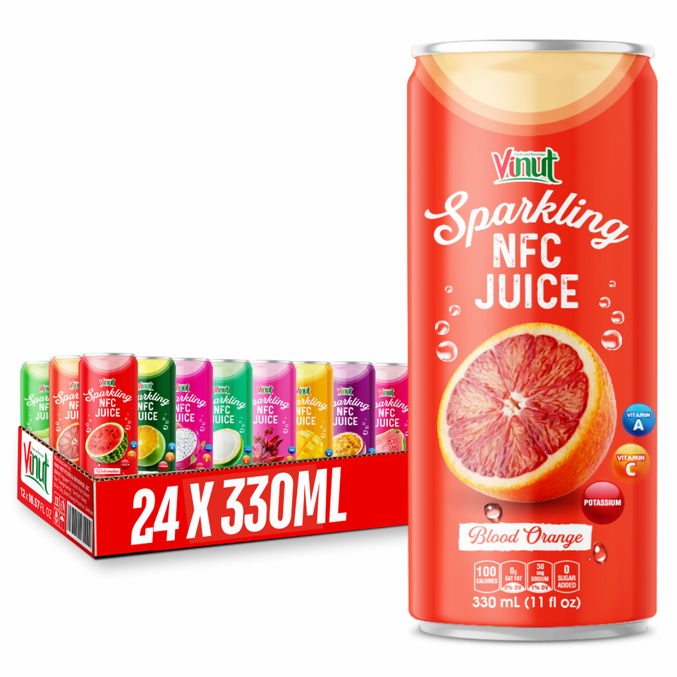 Bajo MOQ y muestra gratis 330ml bebida de jugo de naranja espumoso-Fábrica de Vietnam, bebida carbonatada, OEM/ODM, precio al por mayor