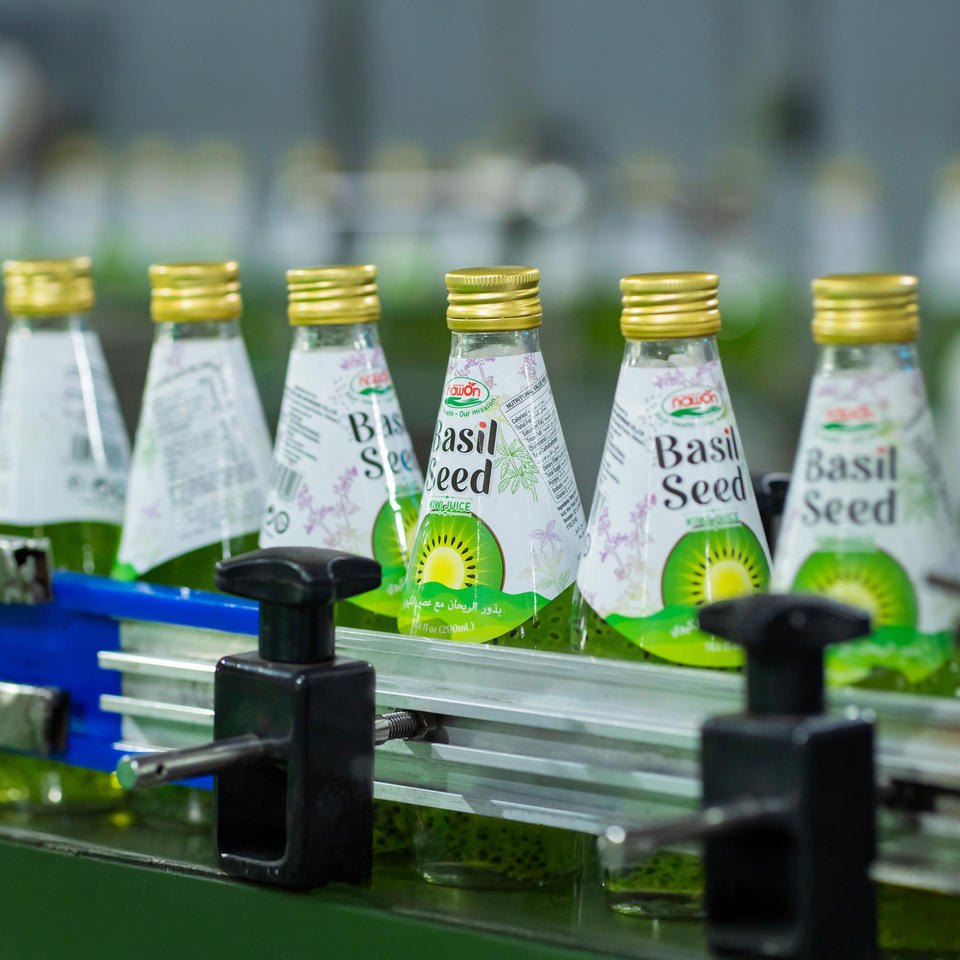 Bajo MOQ NAWON Semillas de albahaca con bebida de jugo de kiwi 290ml Botella de vidrio Muestra gratis Bebida al por mayor en Vietnam OEM ODM HALAL