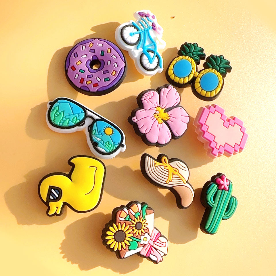 Abalorios de PVC personalizados de bajo MOQ para zapatos Croclet, dijes para pulseras Bogg con logo personalizado, pines decorativos y accesorios.
