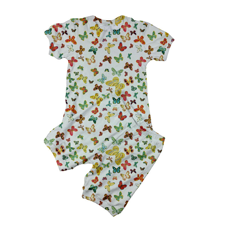 Conjunto de Ropa de Verano para Niñas con MOQ Bajo, Conjuntos de Salón para Niñas, Top de Manga Corta con Mariposas Arcoíris + Pantalones Cortos