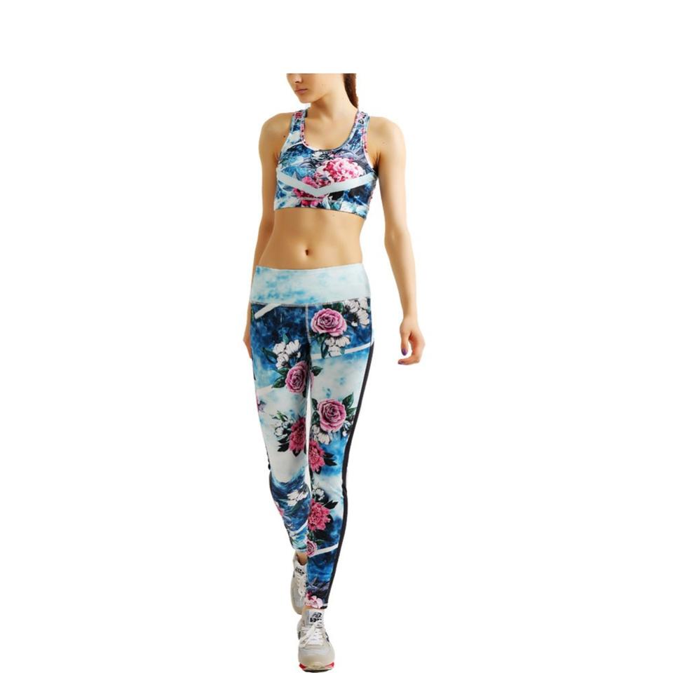 Conjunto de yoga sublimado con diseño personalizado Low Moq para mujer, leggings de cintura alta sin costuras 100% poliéster y conjunto de sujetador deportivo.