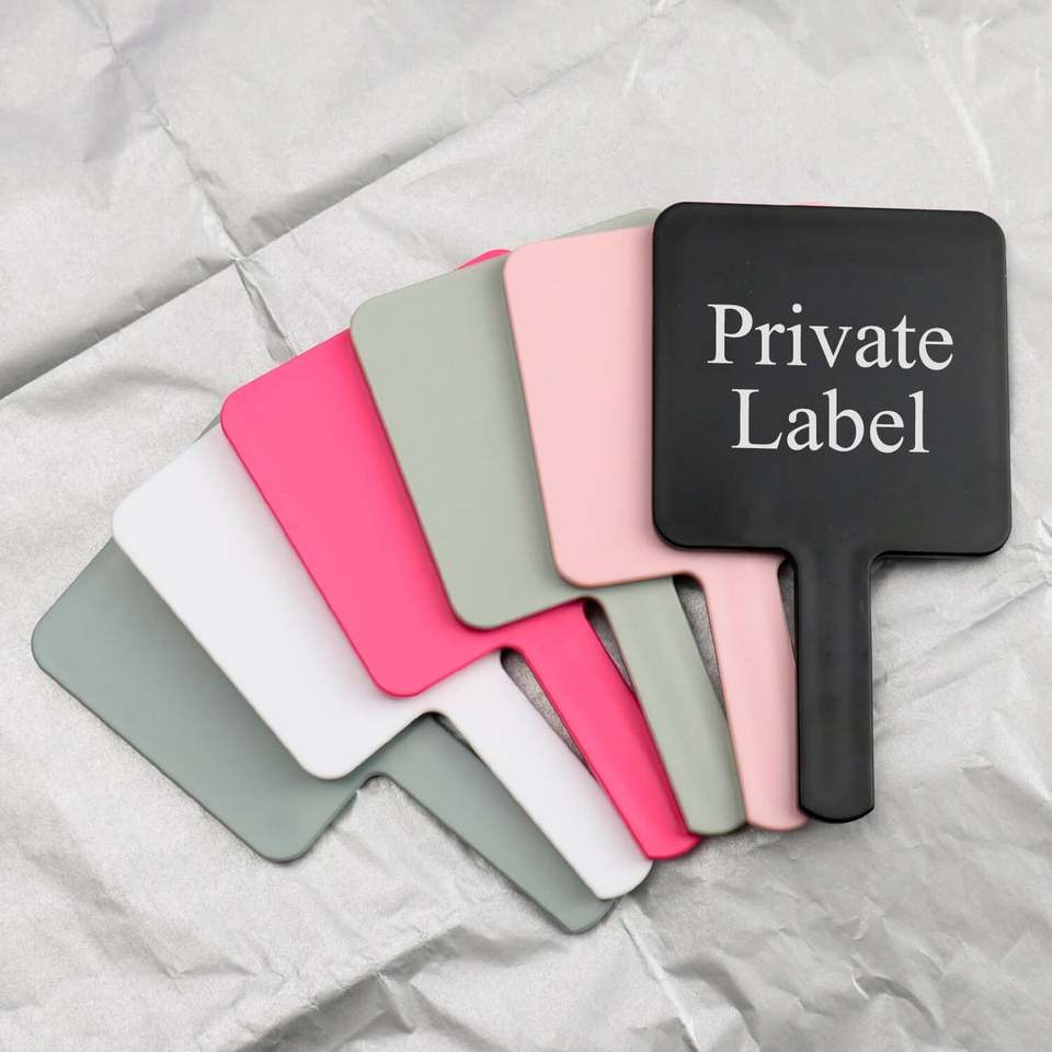Espejo de mano personalizado Moq bajo Espejo de mano Cosméticos de etiqueta privada Espejo de mano con mango