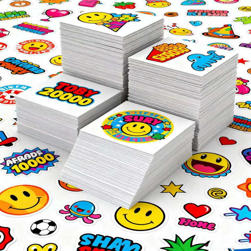 Pegatinas personalizadas con logo de bajo MOQ, troqueladas, impermeables, de vinilo adhesivo, con diseño de dibujos animados