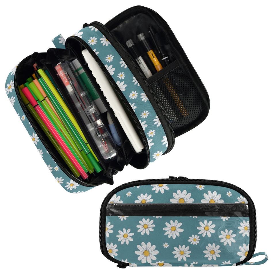 Estuche de Lápices de Poliéster con Diseño de Flor de Margarita, Dos Cierres, Ventana de PVC, Impresión Personalizada, para Niñas, Bajo MOQ