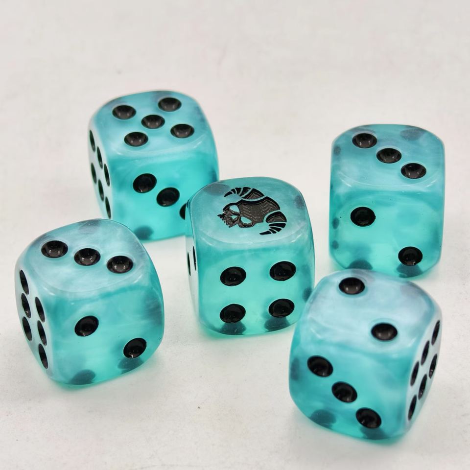Salida de moq bajo, 5 uds., borde redondo, azul, translúcido, punta de mármol, dados personalizados, grabado de logotipo, juego de dados de resina acrílica de plástico