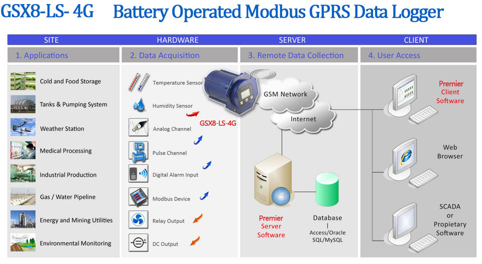 Capacidad de suministro: Registrador de datos de baja potencia Modbus GPRS Modbus dispositivo grabador GS