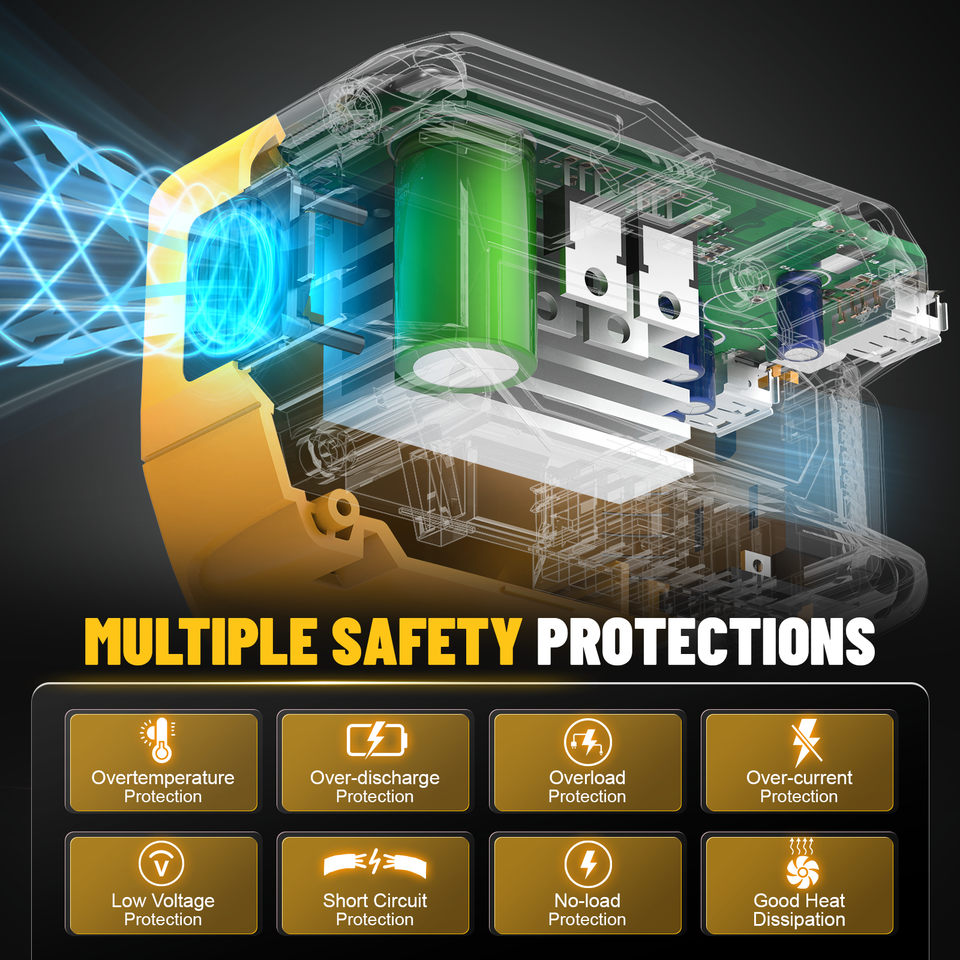 Protección contra cortocircuitos:Apague si el voltaje de la batería es aproximadamente inferior a 16 V.