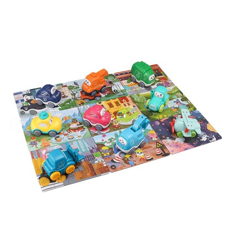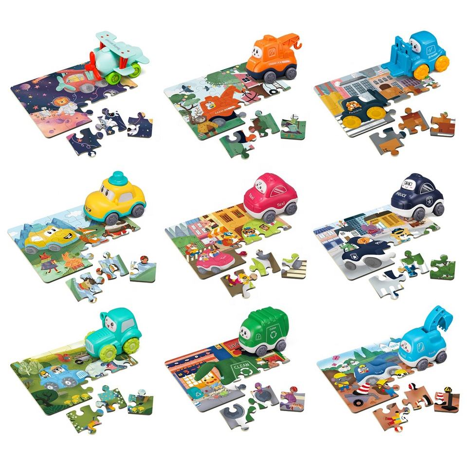 Nombre del producto: Coche de juguete rompecabezas juego conjunto:Juego de rompecabezas de coche Juguetes de fricción Juego de rompecabezas de vehículos inerciales