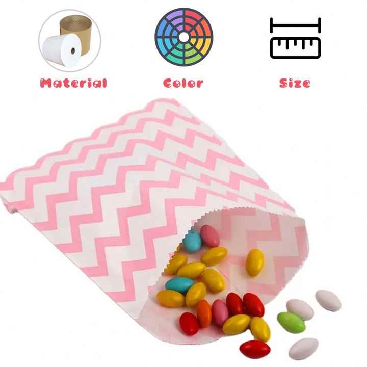 Bolsas de Papel Kraft para Dulces Personalizadas a Bajo Precio, Bolsas Pequeñas de Papel con Puntos Rosas, Bolsas de Papel Glassine para Alimentos