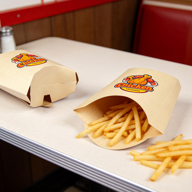 Envases de Papel Kraft para Comida Rápida, Impresos Personalizados, Desechables, a Bajo Precio, para Papas Fritas, con Cuchara, para Niños, Material Escolar