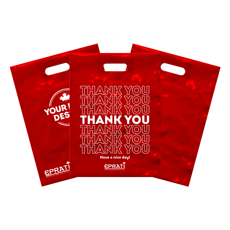 Bolsa de Compras de Plástico MDPE con Asa Troquelada y Logotipo Personalizado, Precio Bajo, para Venta al por Menor