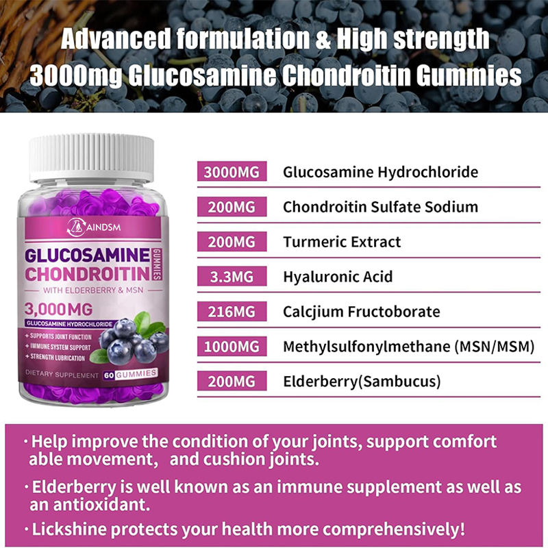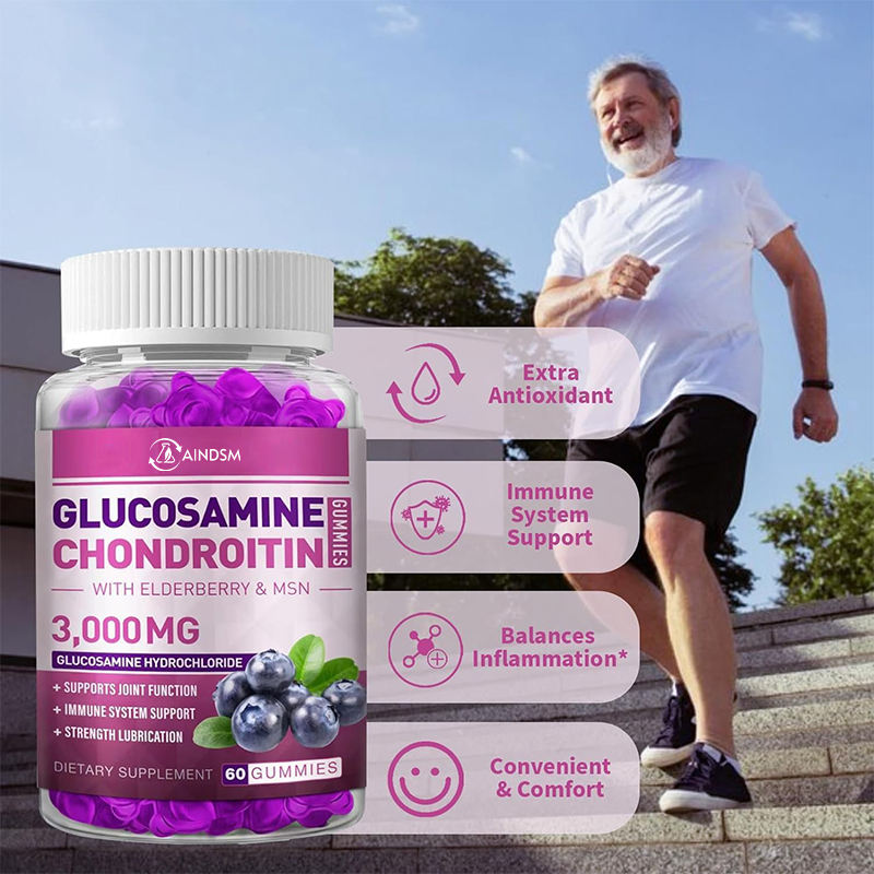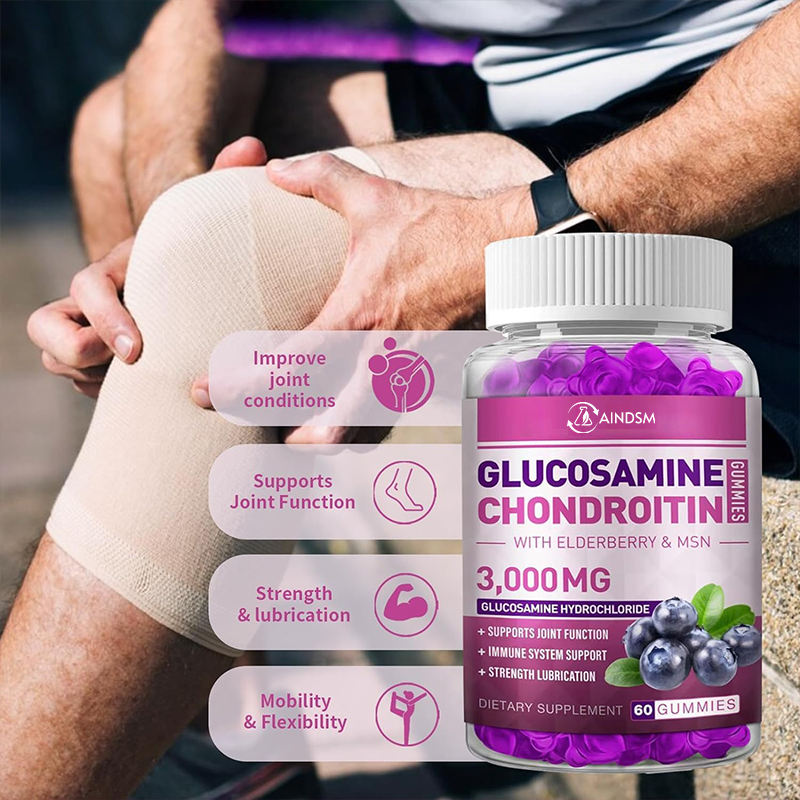 Gomitas de Glucosamina y Condroitina a Bajo Precio, Apoyo para la Función Articular, Gomitas de Vitaminas, Baya del Saúco, Cúrcuma, Movilidad, Gomitas de Calcio