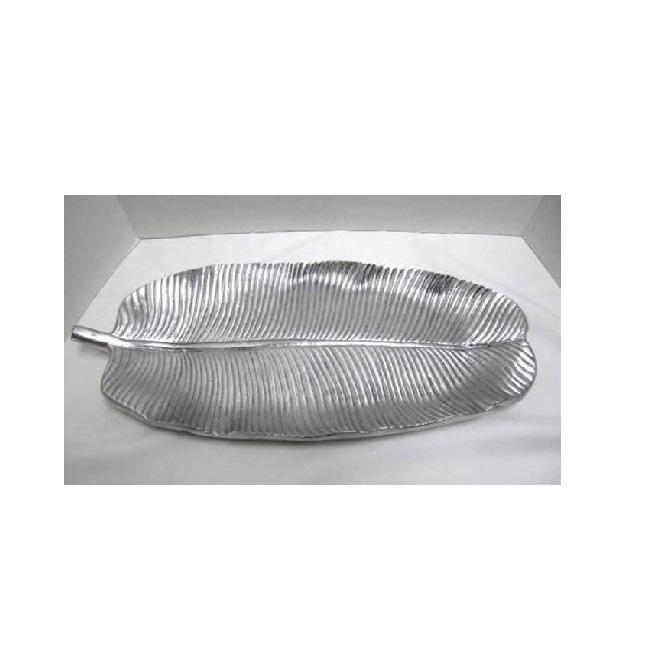 Precio bajo Diseño moderno Bandeja de hojas decorativas de metal de color plateado Bandeja de aluminio para servir hojas doradas