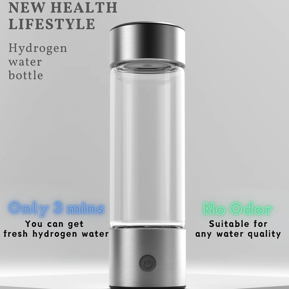 Botella de Agua Rica en Hidrógeno de Vidrio PEM/SPE, de Gran Capacidad de 460 Ml, Plateada, con Inhalador, Precios Bajos y MOQ, para Oficina, Viajes y Exteriores