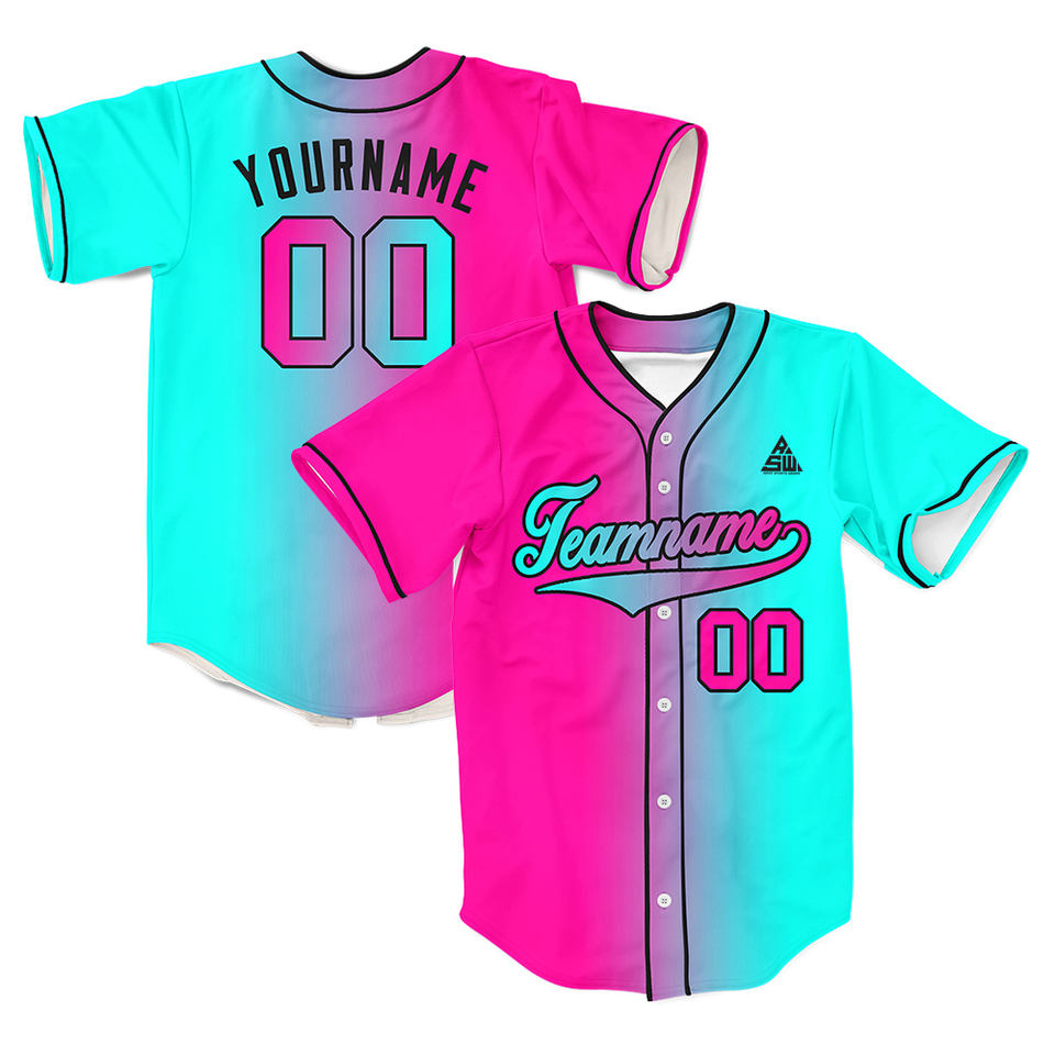 Camiseta de Béisbol Personalizada Rosa y Negra con Botones, Uniforme de Equipo, Nombre y Número Personalizados, Venta al Por Mayor OEM