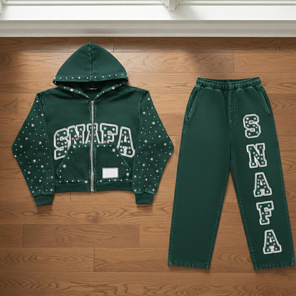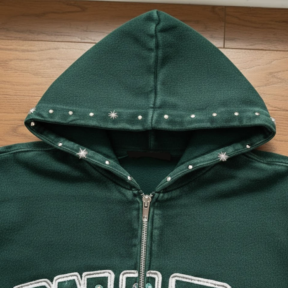 Chándal de Pedrería para Hombre Transpirable de Bajo Precio, Chándal de Pedrería con Logotipo Personalizado, Chándales de Pedrería Oversize con Lavado Ácido para Hombre