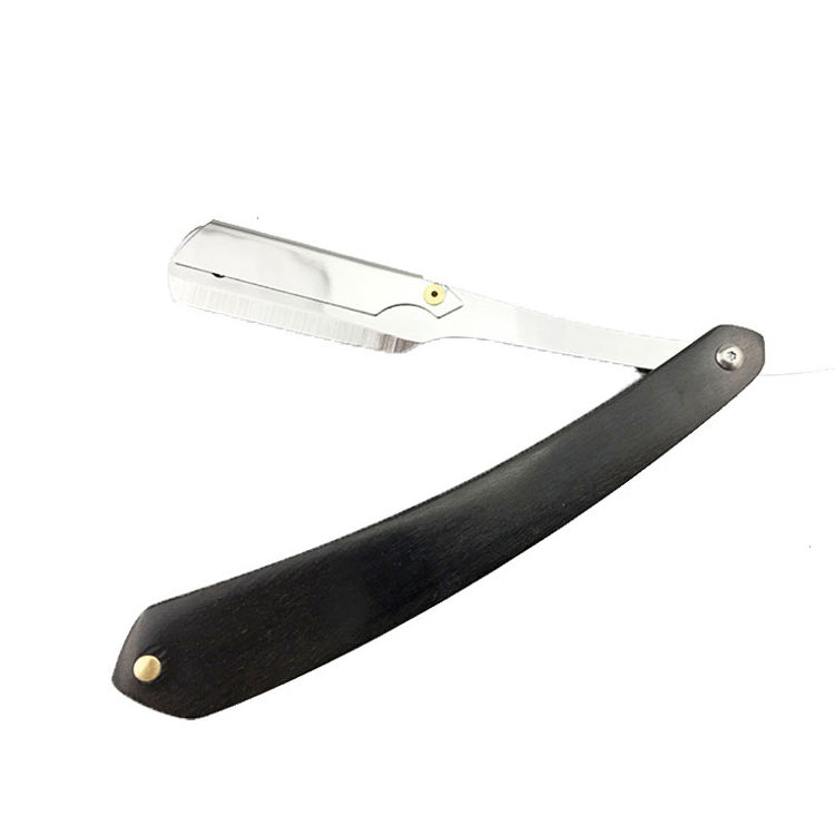 Maquinilla de afeitar plegable de acero inoxidable de bajo precio, maquinilla de afeitar recta de Damasco inoxidable con mango de cuerno de Búfalo, maquinilla de afeitar recta de peluquero