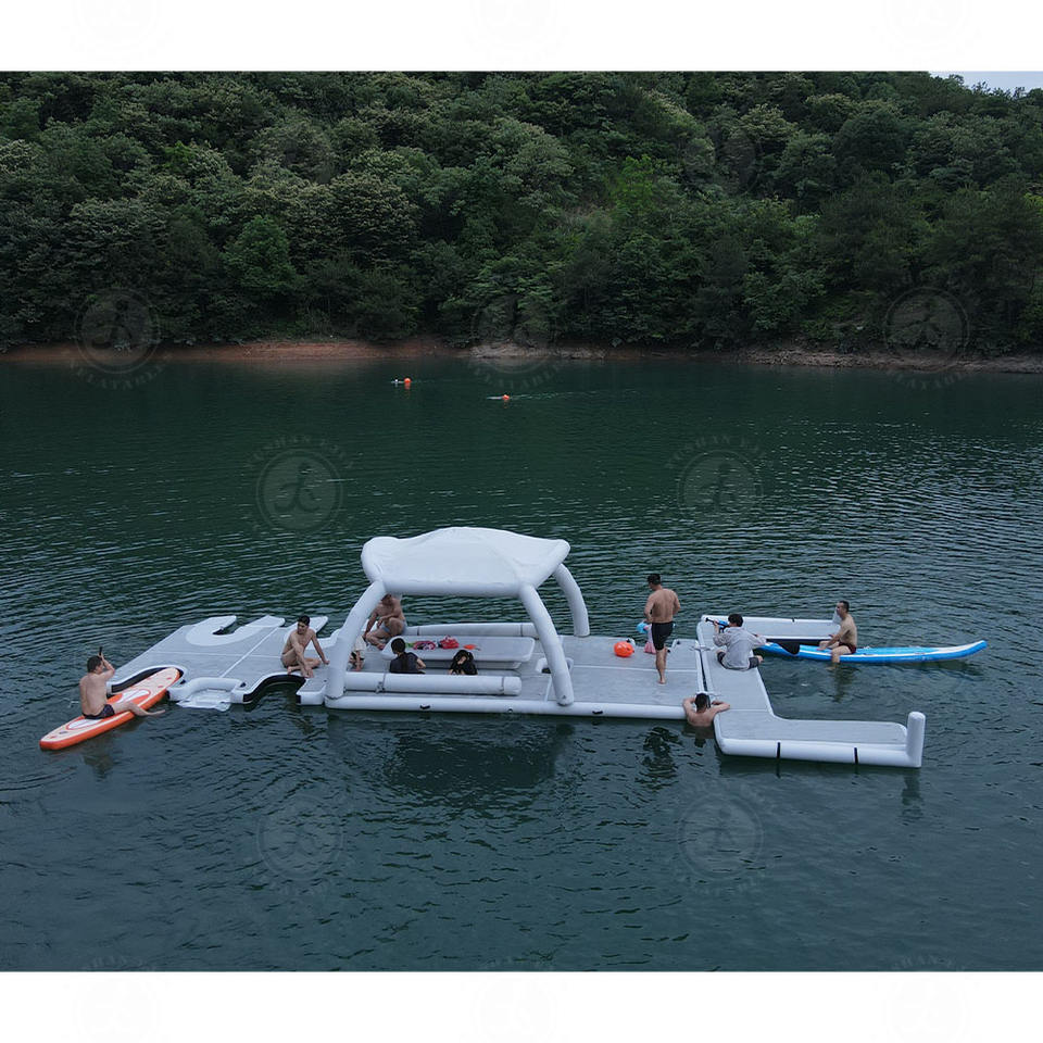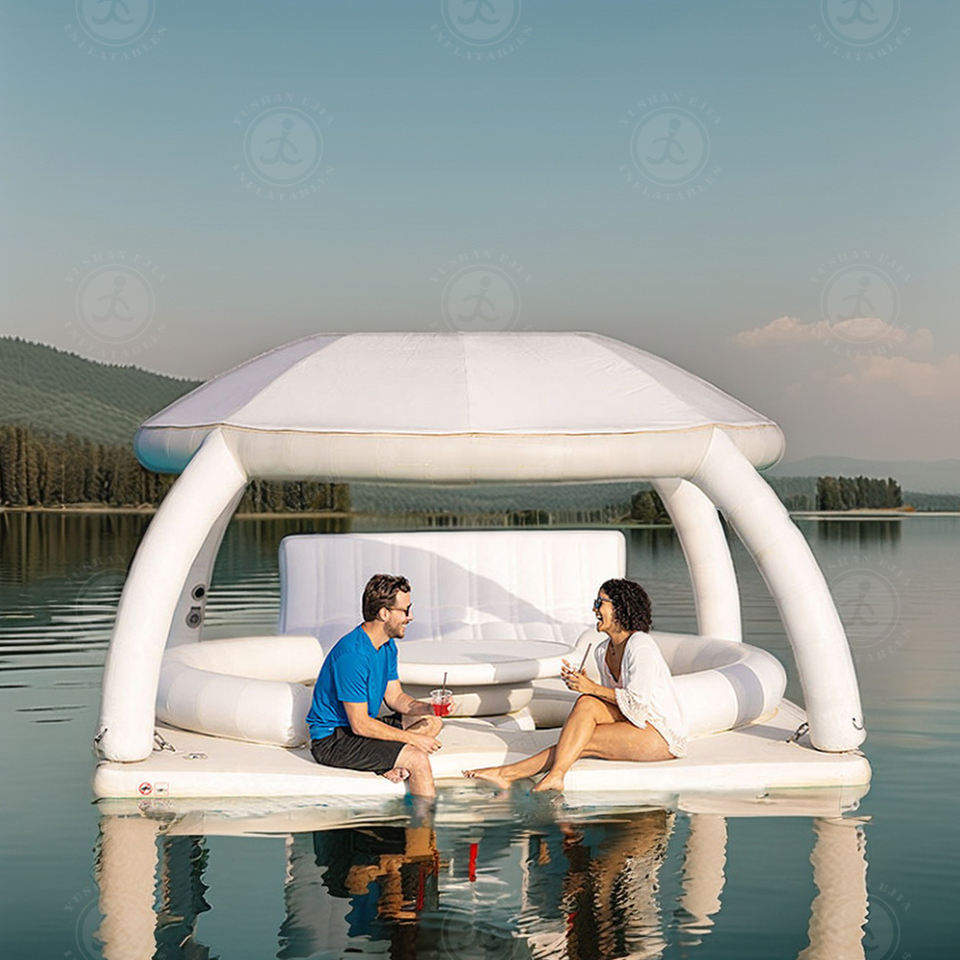 Precio bajo al por mayor inflable piscina Bar flotador plataforma flotante tienda sol refugio salón plataforma isla flotante