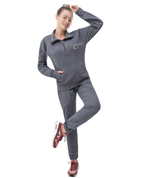 Chándal de 2 piezas con cremallera para mujer, forro polar de poliéster elástico suave transpirable para entrenamiento de invierno, deportes al por mayor a bajo precio