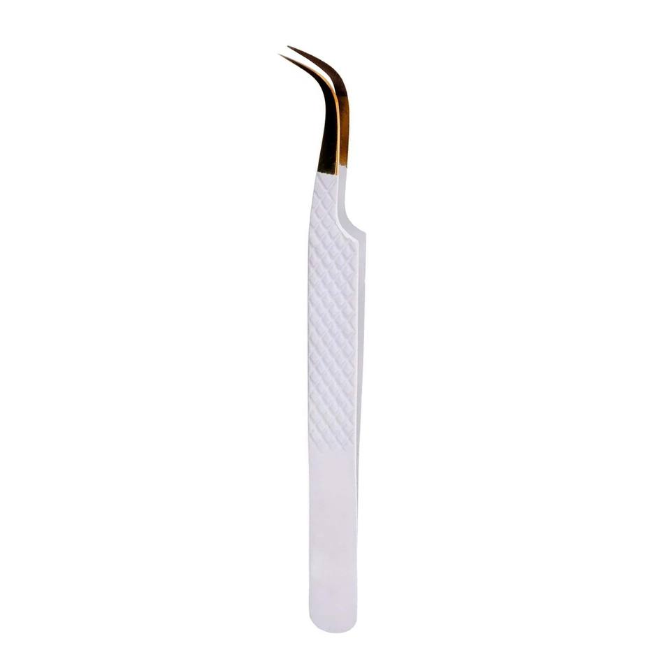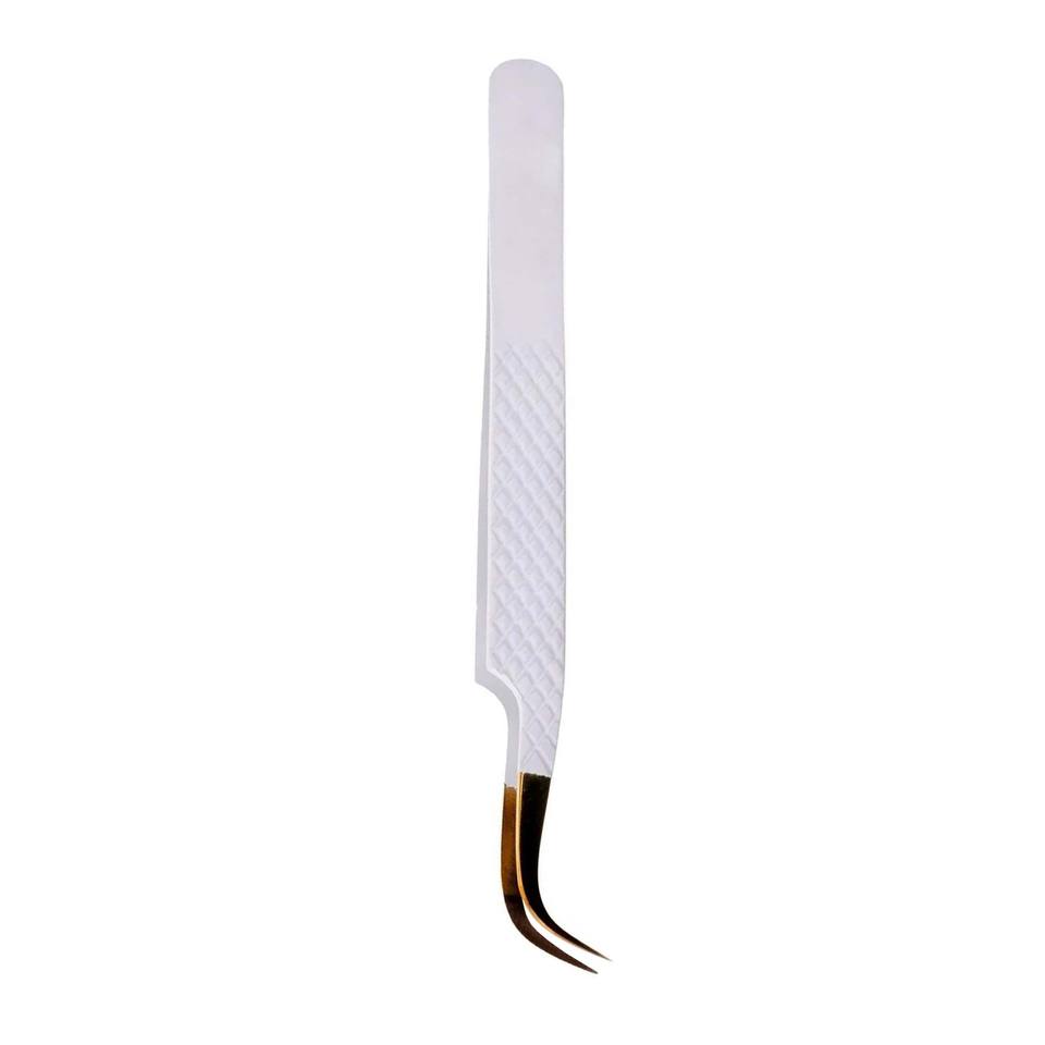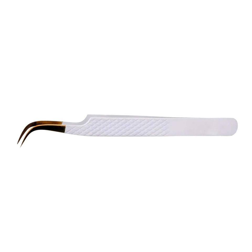 Recién llegado, pinzas de extensión de pestañas doradas y blancas, excelentes pinzas de punta de aislamiento redondas de bajo precio para Volumen de pestañas