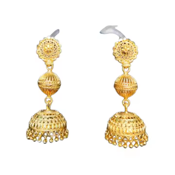 Juego de pendientes de precios bajos con diseño tradicional de 22CT chapado en oro estilo Jhumka pendientes joyería para mujer desgaste