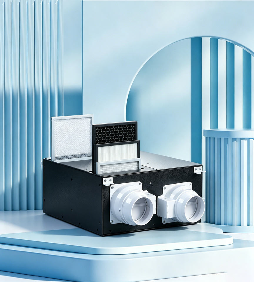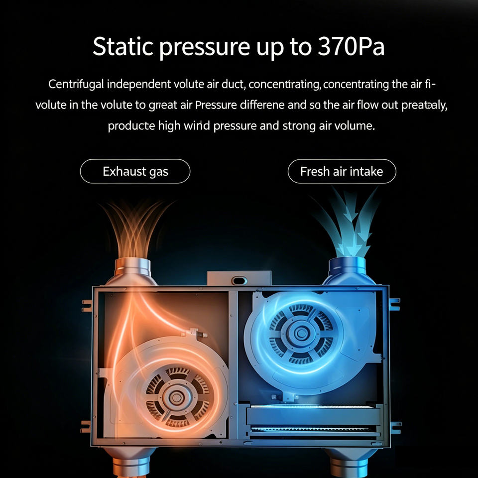 Unidad de Ventilación Equilibrada de Techo Delgada de 150 mm con Motor EC para Apartamentos, Unidad de Ventilación Equilibrada de Aire Fresco HRV