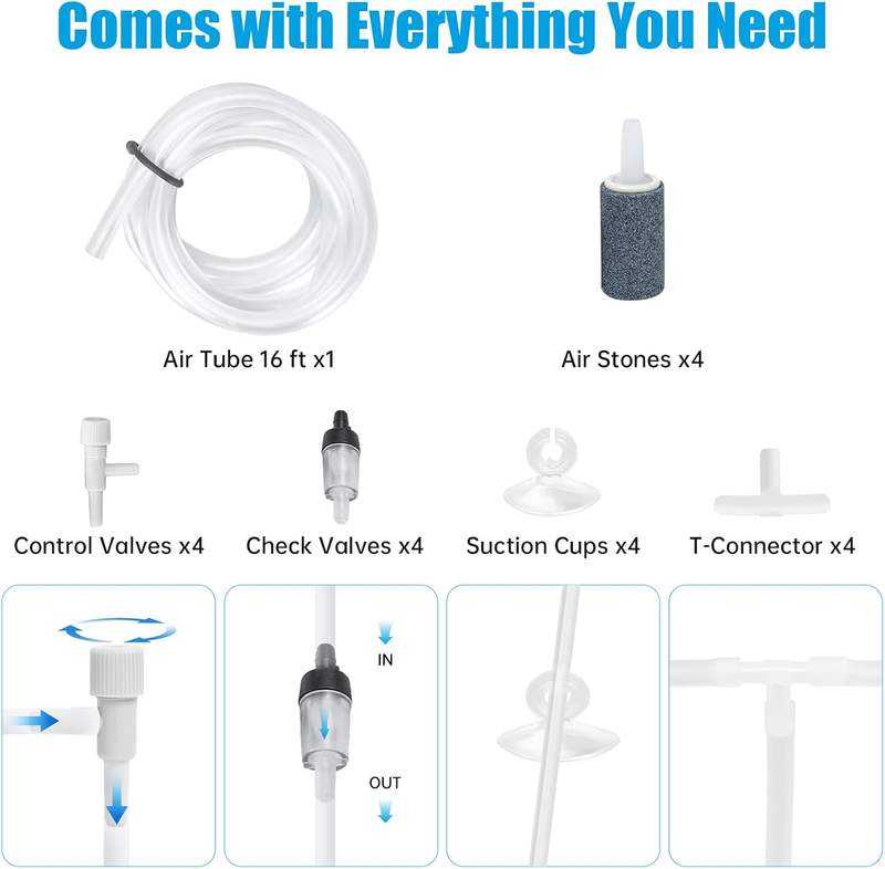 Bomba de Aire de Bajo Consumo, Ajustable, Súper Silenciosa, con 4 Salidas, Oxigenador para Acuarios, Bomba de Aire para Peces Koi