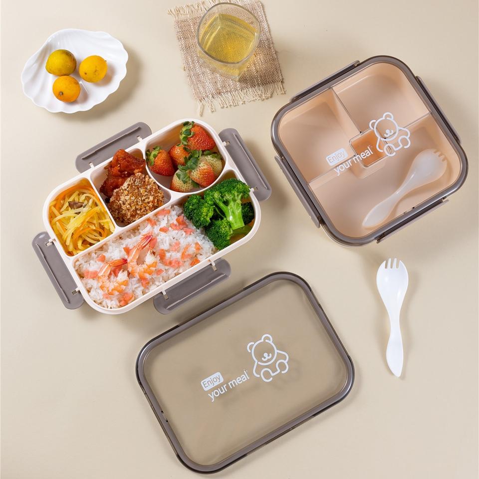 Contenedor de Alimentos de Plástico de Bajo Precio, Lonchera Bento para Oficina, Compartimentos Reutilizables, Caja de Almacenamiento de Alimentos para Cocina