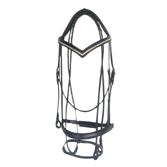 Precios más bajos: Brida de cuero acolchada de dos filas con cristales y riendas con cordones | Brida de Doma Premium en Venta
