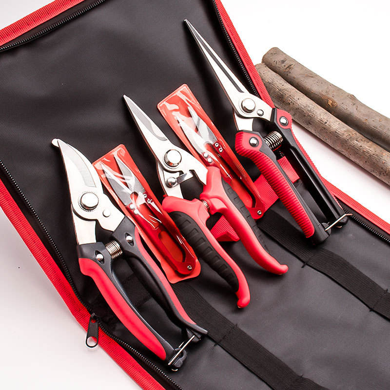 Lu Ban Pruning Shears Set 3 Piece Bypass Bird Beak Stainless Steel Red Garden Tools For Fruit Tree Orchard Trimming
