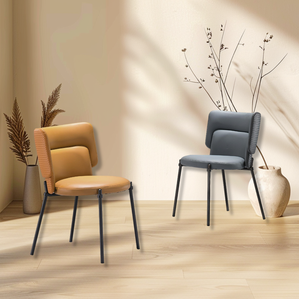 Lu Cómoda Silla de comedor con soporte de hierro Tela de cuero Respaldo moderno para uso doméstico o hotelero