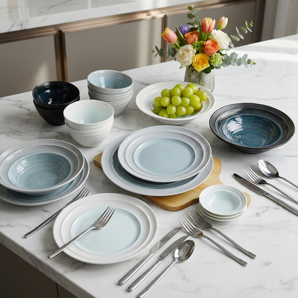 Vajilla de Cerámica Ecológica Lucerne, Platos Hondos y Planos de Alta Calidad, Tazón para Arroz, Apta para Microondas, Acabado Glaseado