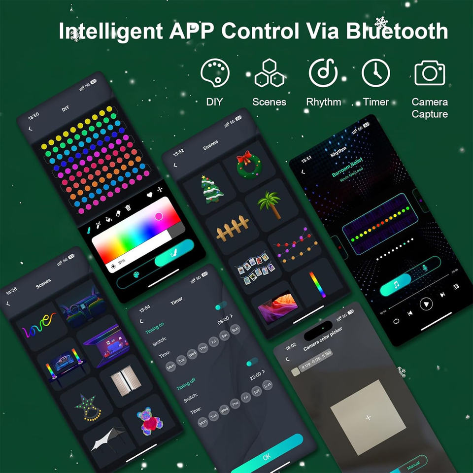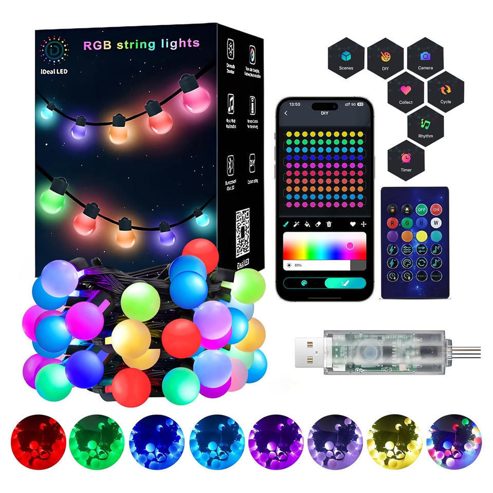 Luces de Cadena LED RGB con Control por Aplicación, Impermeables, Regulables, para Decoración de Exteriores, Balcones y Jardines