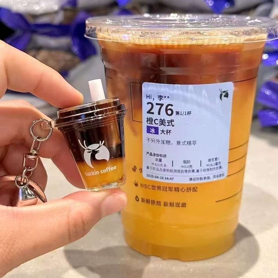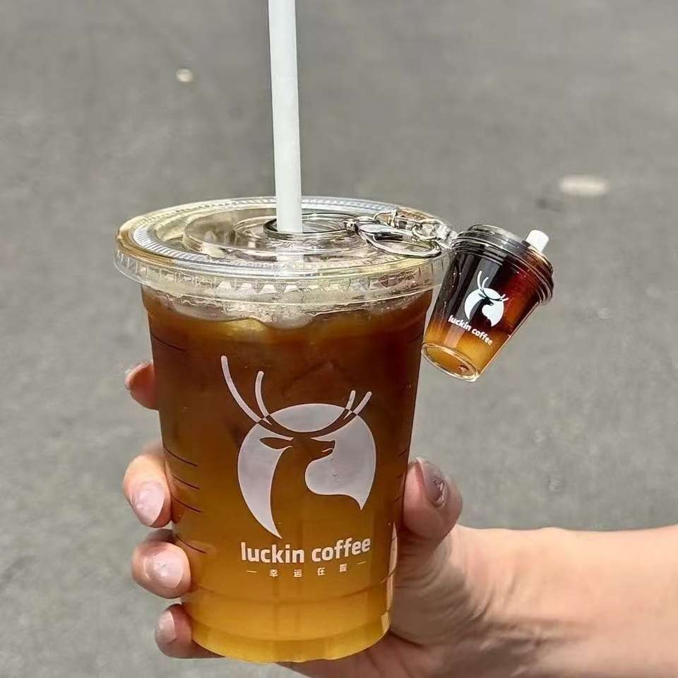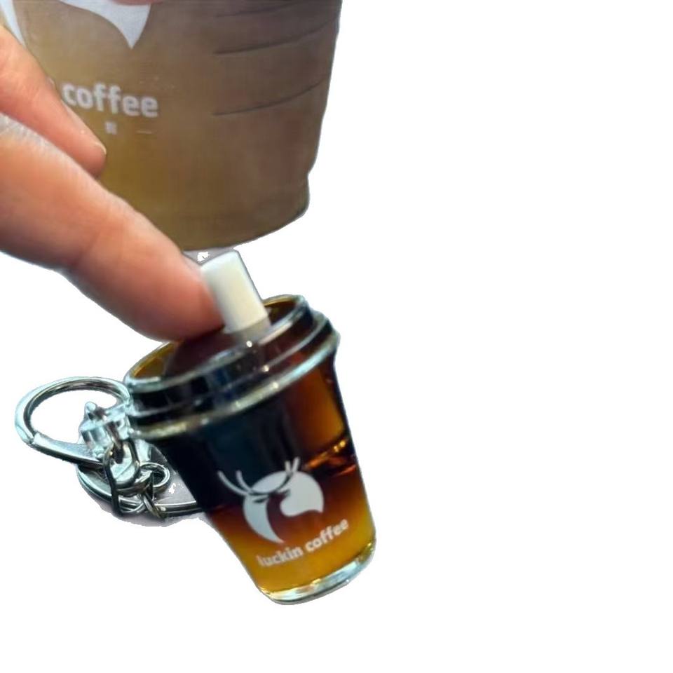 Llavero Acrílico Luckin Coffee, Mini Taza con Pajita, Regalo Promocional Portátil