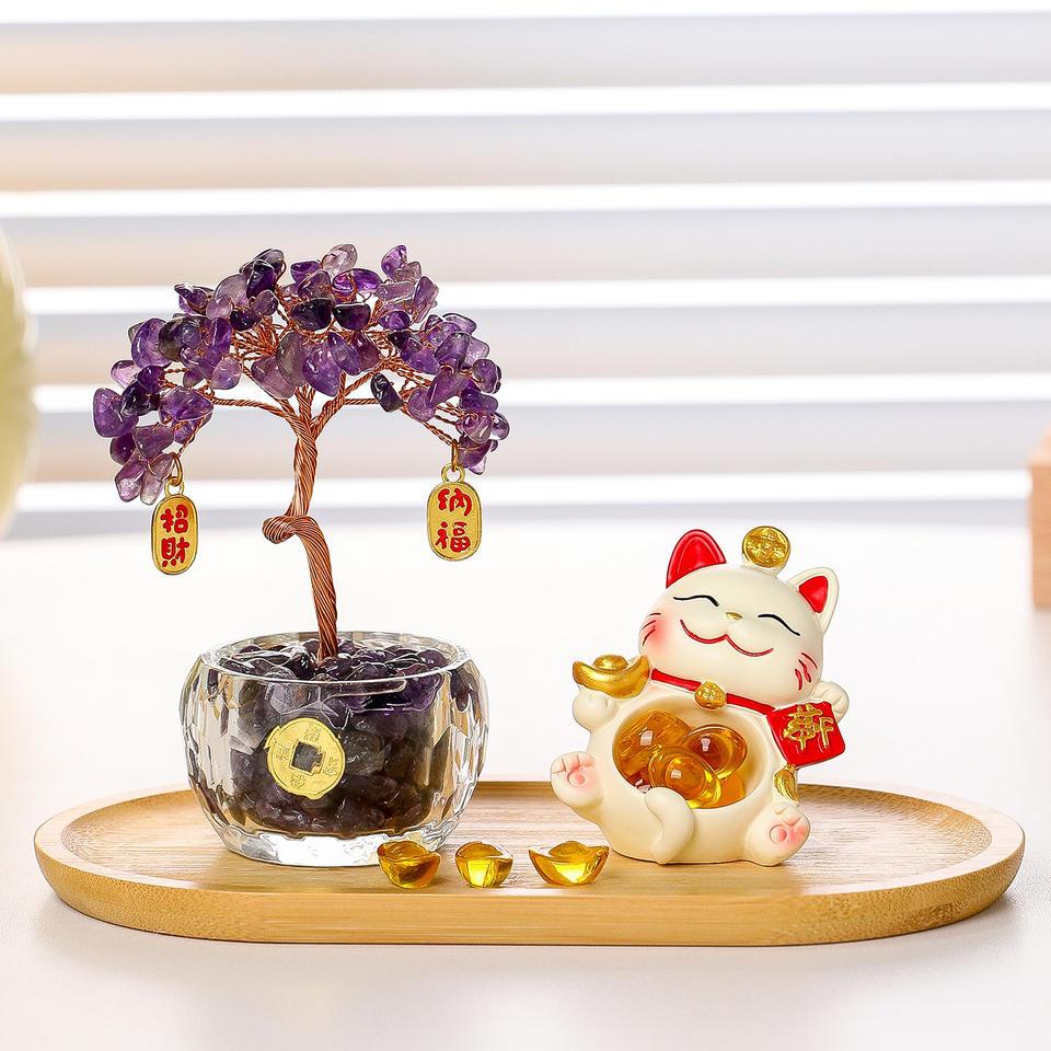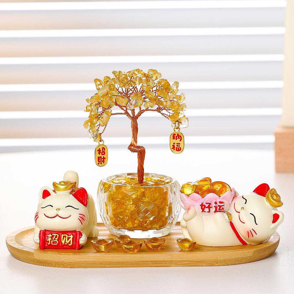 Gato de la Suerte con Diseño de Lingote de Oro, Árbol del Dinero de Cristal Amarillo Natural, Adorno de Escritorio Feng Shui, Regalo para el Año Nuevo Chino