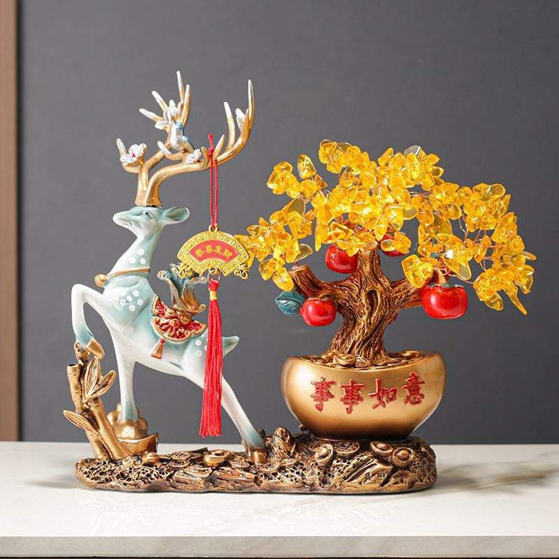 Adorno de ciervo de la suerte Árbol de la fortuna sala de estar adornos de gabinete de vino inauguración de la casa nuevos regalos para el hogar regalos de apertura artesanías de alta gama