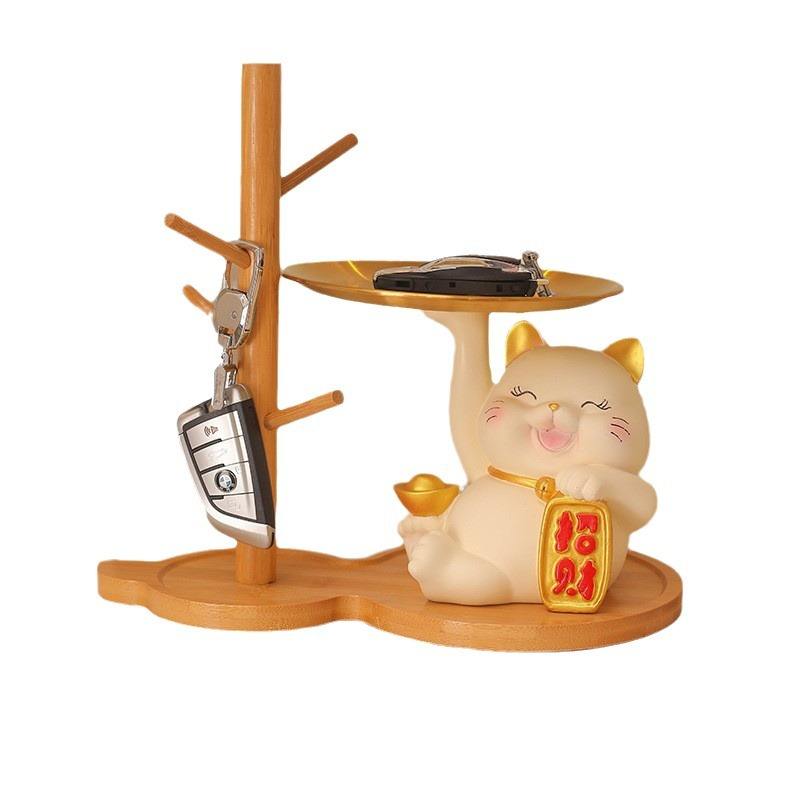 Figura Decorativa de Gato de la Suerte en Resina Epoxi, Escultura Artesanal para Guardar Llaves en la Entrada, Decoración del Hogar, Regalo de Inauguración