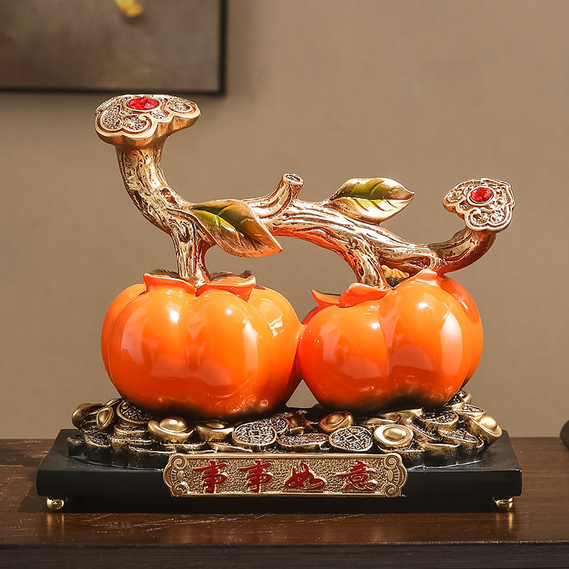Adornos de la suerte para escritorio de oficina, patrón de escultura artesanal de resina con alicates y regalos de apertura de caquis para casa nueva